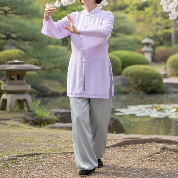 太極拳ウエアはこれまで横浜中華街で購入していましたが、今回こちらのウエアを紹介いただいて、色といい、縫製といい、何よりデザインがとても気に入りました。あまりに素敵なので大人買いしてしまいました。太極拳のクラスでのみならず、タウンでも楽しみたいと思っています。私はもっぱらシンプルな太極拳服をもとめましたが、チャイナの生地でシンプルでエレガントな雰囲気の太極拳服があればいいなと希望します。ストレッチ太極拳パンツは明るい色(オレンジやライトグレー)だと下着が透けるのがちょっと残念です。それと色落ちがないとさいこうです。でも、総じてAROさんの服に出会えてこんなにうれしいことはありません。お店の対応も早く、注文の48時間後には試着できるのもうれしいです。ありがとうございます。