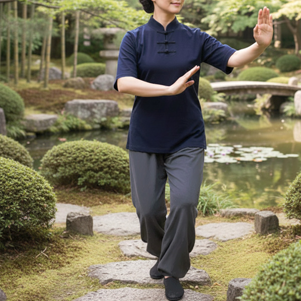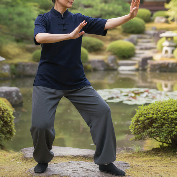 キャンペーン価格の定番シンプル太極拳Tシャツを買いました。程よい生地厚で、ストレッチも効いているのでとても着やすいです。まだまだ初心者なので今までは普通のTシャツで練習していましたが、お手頃価格でシンプルなチャイナ襟を手に入れることができて、モチベーションが上がりました。カッコいいウェアに挑戦できるよう、練習がんばります!