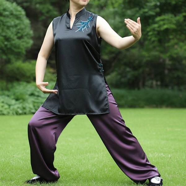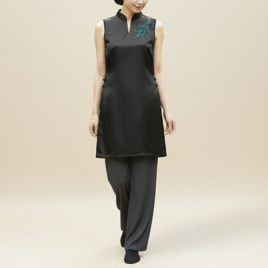 孔雀刺繍&ノースリーブがカッコいい太極拳ウエアです。