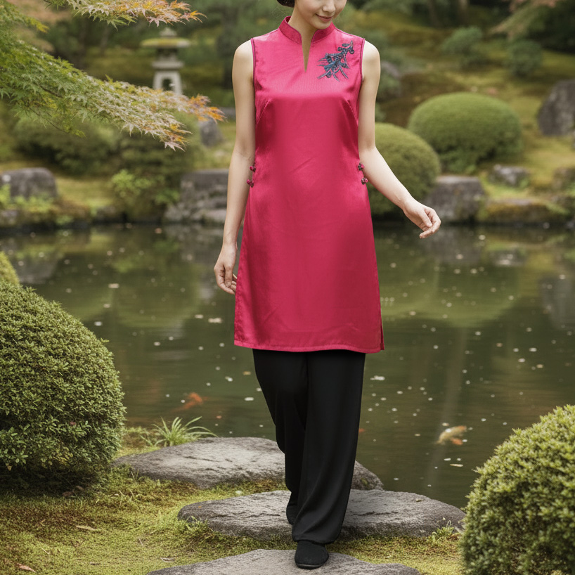 今回で3度目の利用になります。こちらの太極拳服は他には無いデザイン性が魅力で欲しいものだらけw 今回はノースリーブのウエアが欲しくて孔雀刺繍ノースリーブ太極拳服のマゼンタとブラックを購入しました。中にピタッとした五分袖や長袖のTシャツを着る予定です。高級感のある生地&刺繍が本当にお洒落で気に入りました。いつも期待を裏切らない商品にこれからも期待します!!