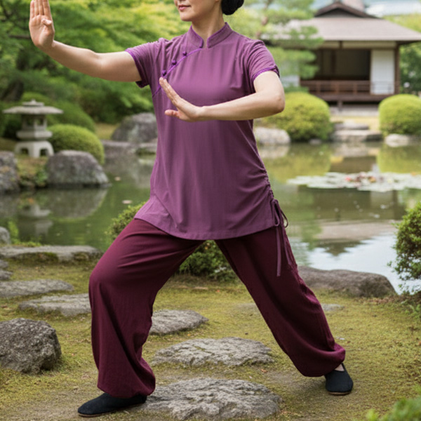 ヨガに適した動きやすいTシャツやパンツを販売しています。蓮をモチーフにしたデザインやオリエンタルなデザインが特徴です。