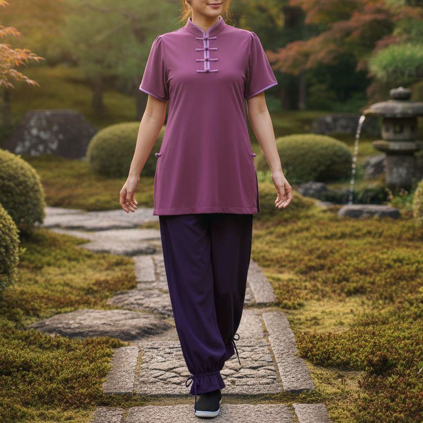 ヨガに適した動きやすいTシャツやパンツを販売しています。蓮をモチーフにしたデザインやオリエンタルなデザインが特徴です。
